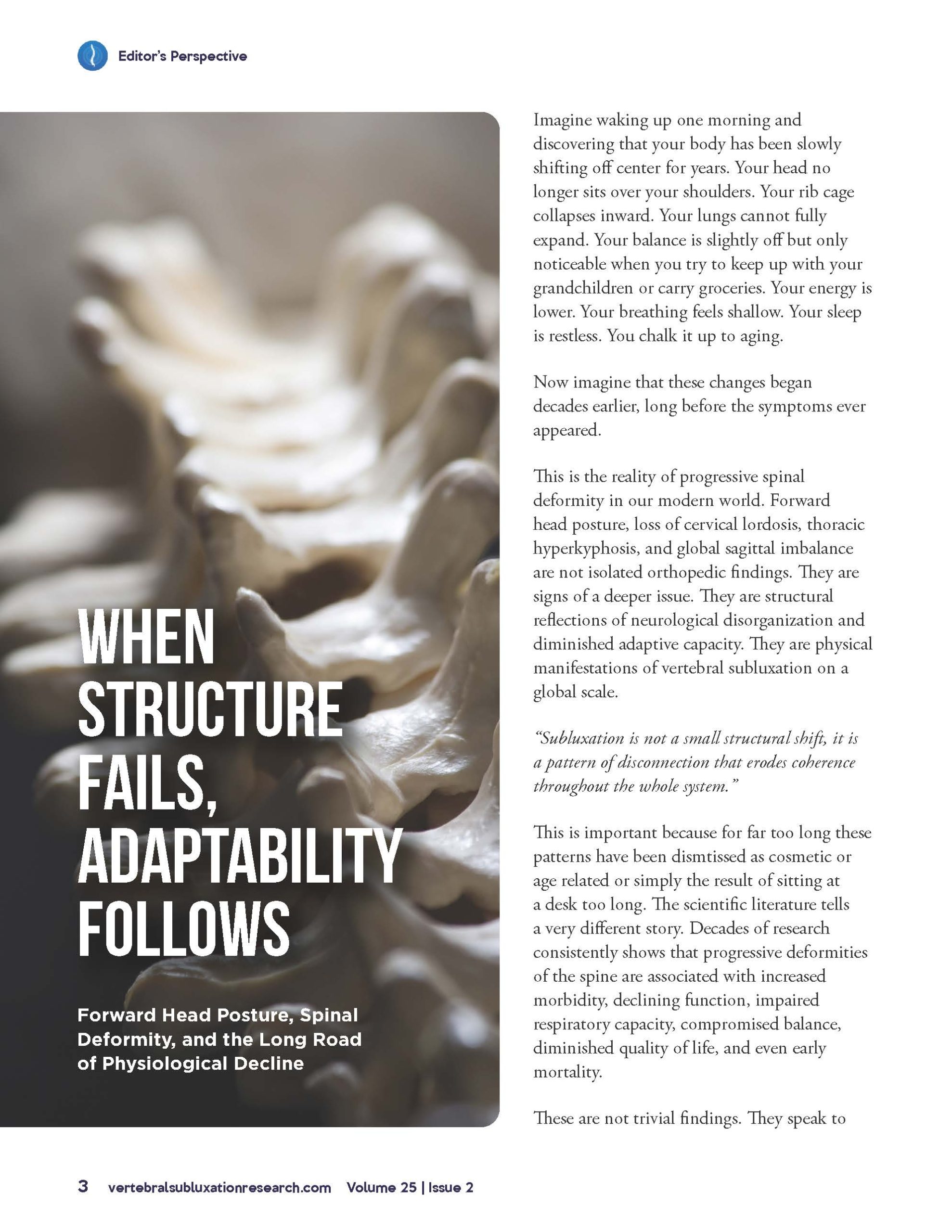 COHERENCE THROUGH CHIROPRACTIC – PRINT VERSION Volume 25 Issue 2. See image for Table of Contents.