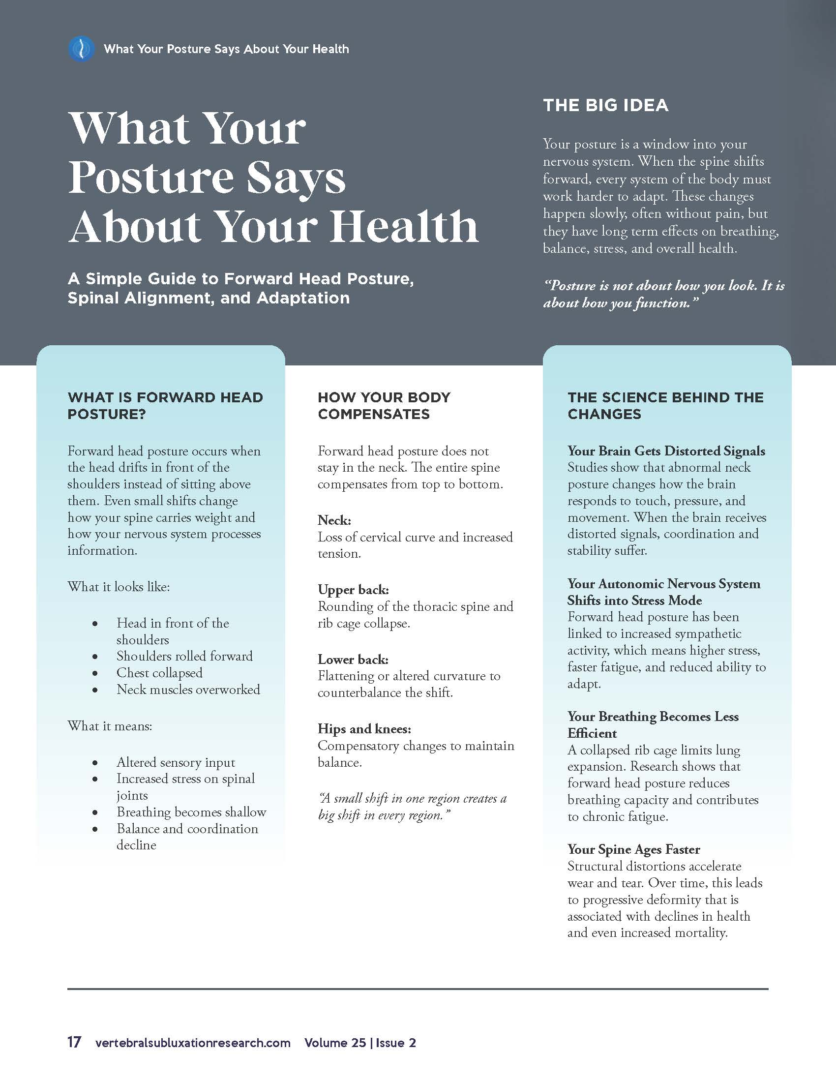 COHERENCE THROUGH CHIROPRACTIC is a quarterly publication highlighting chiropractic research focused on vertebral subluxation. It is devoted primarily to serving the educational needs of the general public and the chiropractic profession. This product is for Volume 25 Issue 2 PRINT version of COHERENCE only. See image for Table of Contents. Sold in batches of 25, 50, 100, 200, 300, 400 or 500 copies.